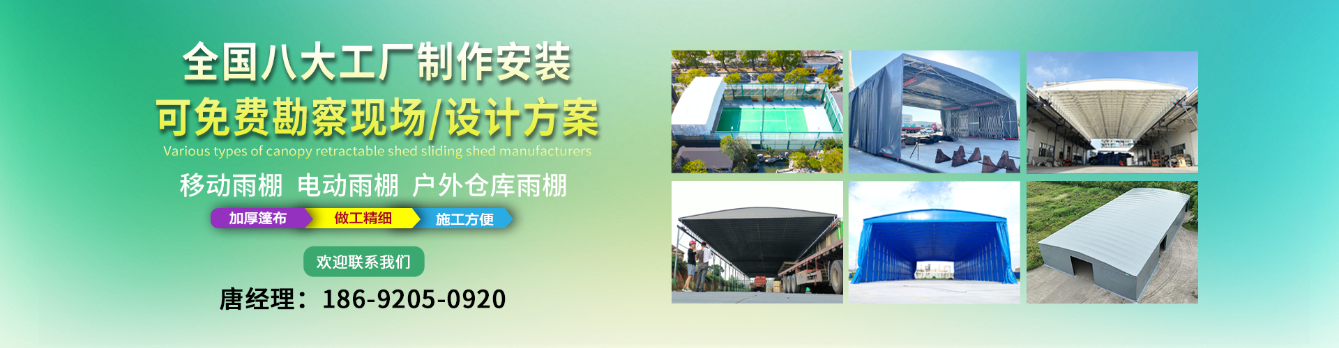 湖南鑫建華鋼結(jié)構(gòu)工程有限公司是一家電動(dòng)雨棚、膜結(jié)構(gòu)車棚研發(fā),生產(chǎn)銷售,施工安裝于一體的專業(yè)鋼結(jié)構(gòu)科技公司,主要產(chǎn)品有伸縮雨棚,電動(dòng)雨棚,膜結(jié)構(gòu)車棚等?! 『系貐^(qū)職員目前有200多人,自建廠房15600平方米,配備先進(jìn)的生產(chǎn)流水線,使每件品質(zhì)產(chǎn)品的堅(jiān)實(shí)基礎(chǔ)。 公司在衡陽,蘇州,天津,濟(jì)南,鄭州,江門,佛山,武漢,重慶均設(shè)有服務(wù)工廠,擁有專業(yè)的技術(shù)團(tuán)隊(duì),配備先進(jìn)的設(shè)備和流水線生產(chǎn),產(chǎn)能高,貨源充足,發(fā)貨速度快,服務(wù)區(qū)域廣?! ∫苿?dòng)伸縮棚適用于通道臨時(shí)倉儲、戶外運(yùn)動(dòng)遮陽、污水池遮蓋、能源交通、熱力化工、礦山、船舶制造及市政建設(shè)、物流、碼頭等領(lǐng)域的構(gòu)件制作加工,成品半成品存放、倉庫、野外儀器設(shè)備操作用房等。尤其是對工廠發(fā)貨、倉儲臨時(shí)遮雨防嗮,梅雨期較長、建設(shè)周期較短的工程施工等特別適用。還可根據(jù)用戶需求量身定制、適合企業(yè)所需不同款式的產(chǎn)品?! ∥夜緢?jiān)持“誠信社會(huì)為本,客戶滿意為榮”的經(jīng)營理念,做到質(zhì)量把控,嚴(yán)格管理,精益求精,恪守承諾。使鑫建華逐步走向成熟,其系統(tǒng)化、專業(yè)化日趨完善。以專業(yè)的技術(shù)、科學(xué)的管理,更高的產(chǎn)品質(zhì)量,優(yōu)良的企業(yè)信譽(yù),真誠的客戶服務(wù),靈活多樣的經(jīng)營方式和務(wù)實(shí)創(chuàng)新的企業(yè)精神愿與社會(huì)各界攜手合作,為推動(dòng)智能鋼結(jié)構(gòu)建筑事業(yè)的發(fā)展而不斷努力。...